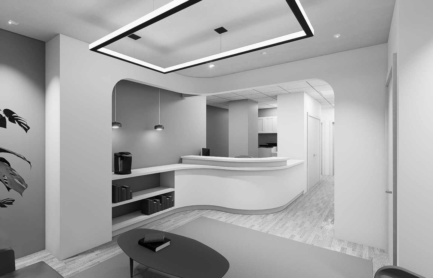 Excited about the fast progress of this project, currently in Design Development. Expected completion, second quarter of 2026. Here’s an image of the reception area from our Schematic Design presentation.